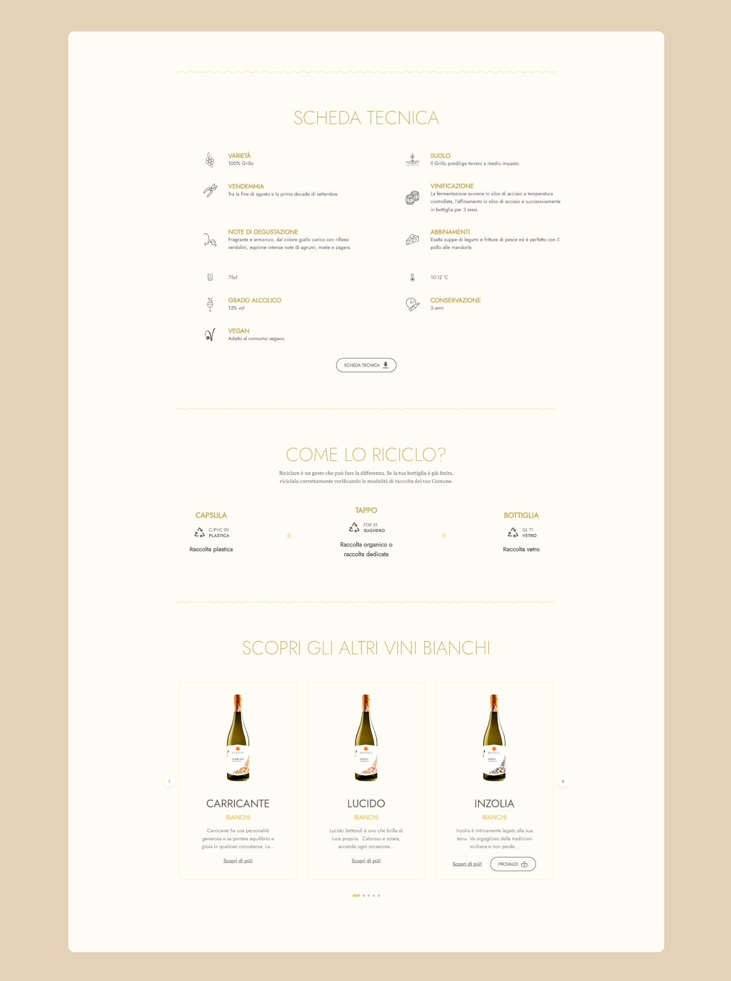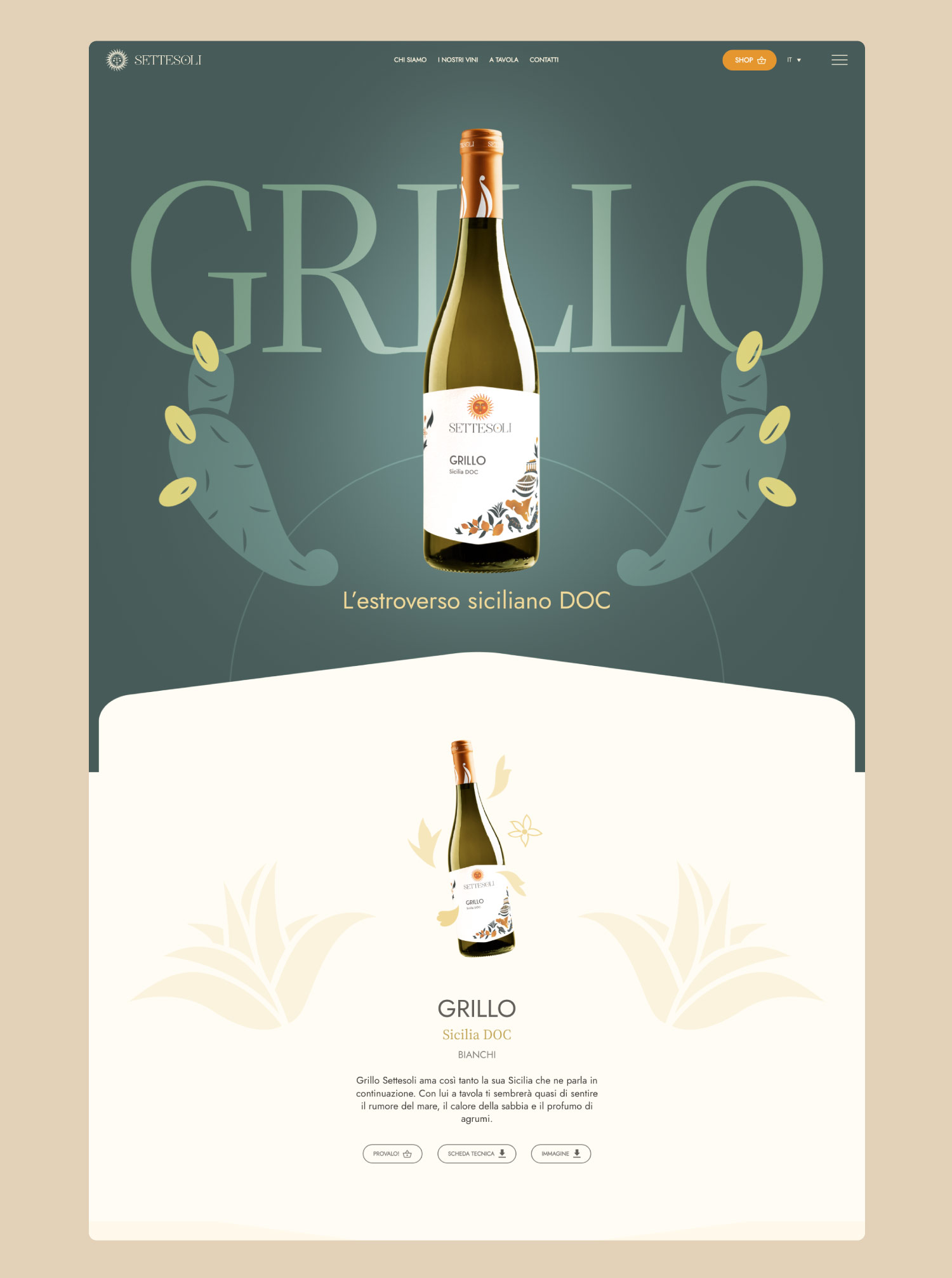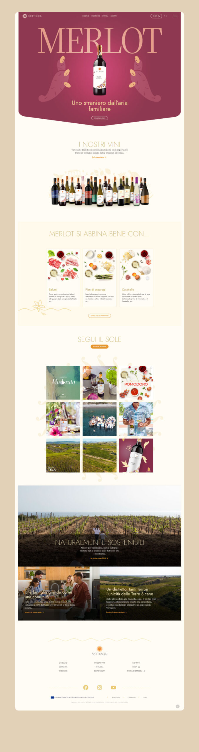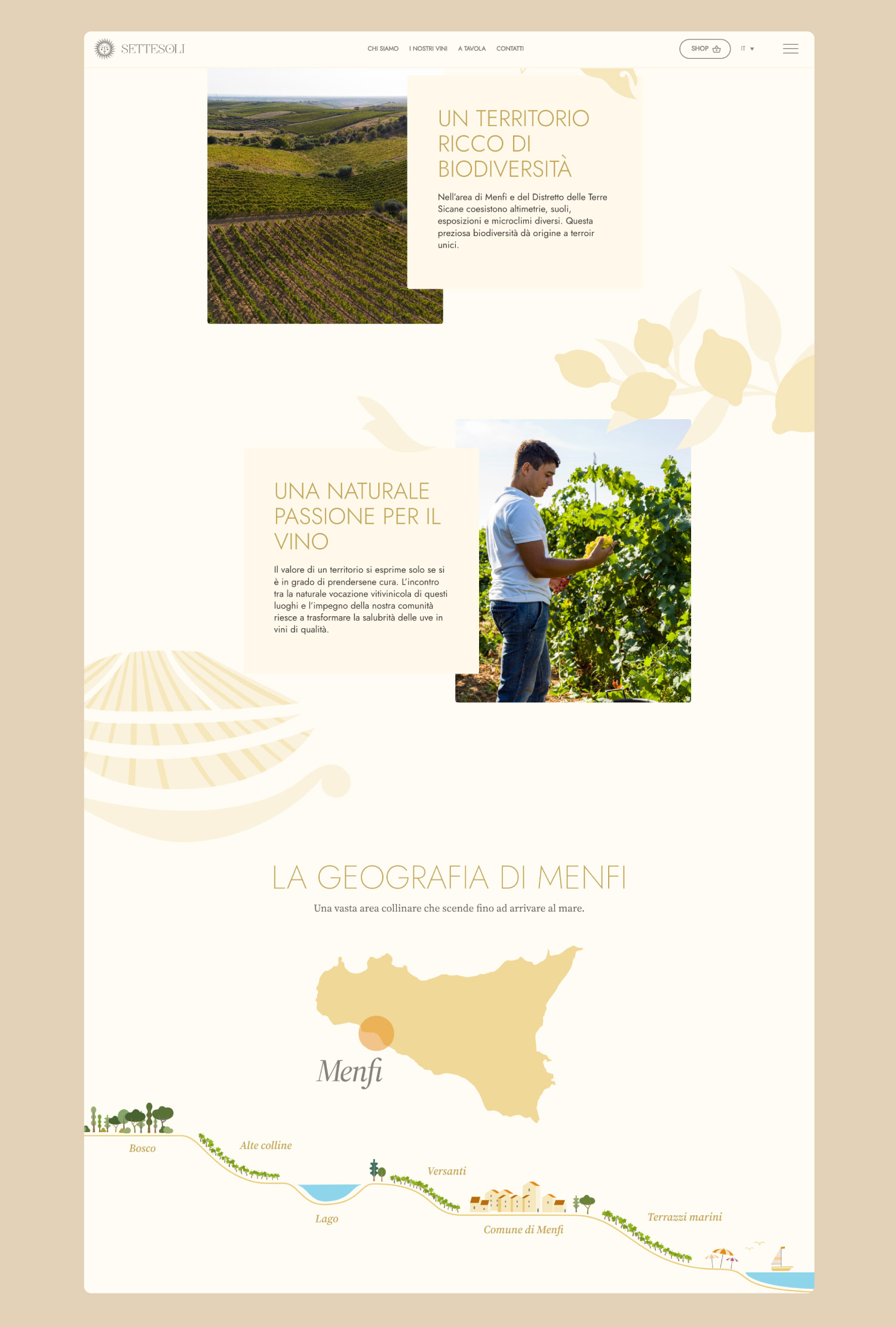Sito web di prodotto realizzato per il brand Settesoli, pluripremiata cooperativa vitivinicola di Menfi, Sicilia, che con oltre 30 cultivar diverse rappresenta la coltivazione più ampia e variegata dell’intera isola.