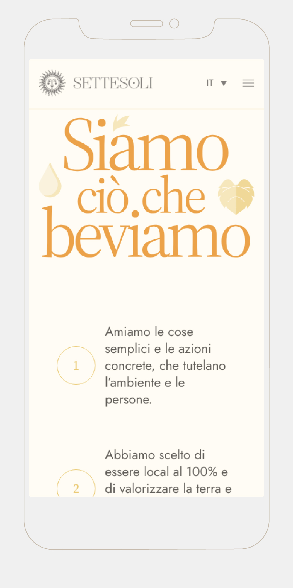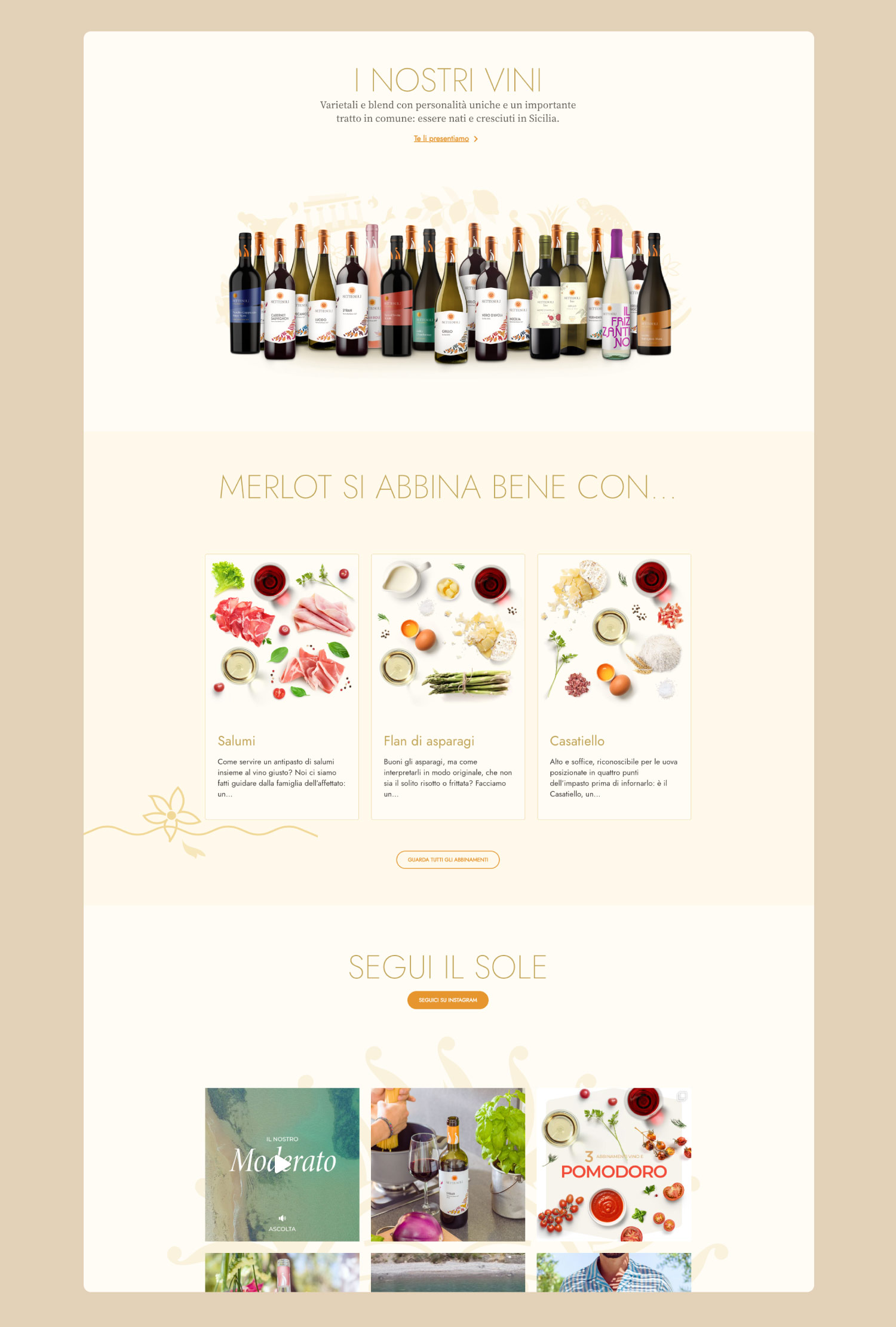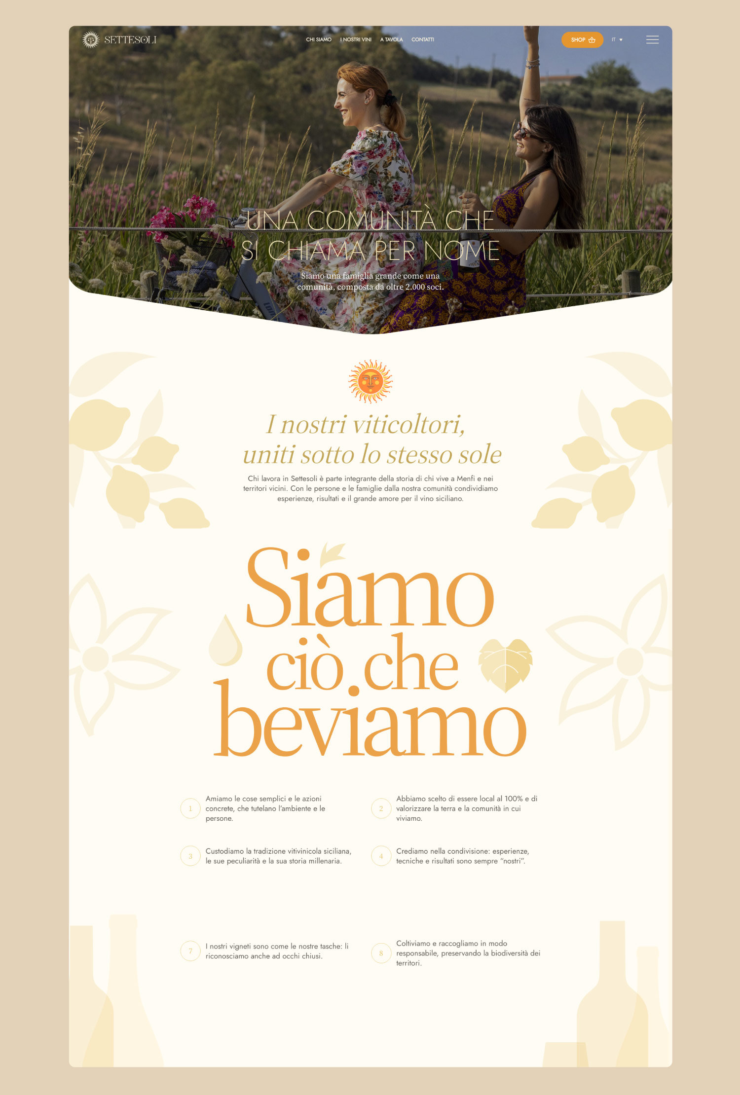 Una piattaforma progettata per dare il massimo risalto al carattere dei vini, la loro estetica e i valori del brand come comunità, territorio e sostenibilità. Un sito web semplice da navigare e dai colori caldi come la Sicilia.