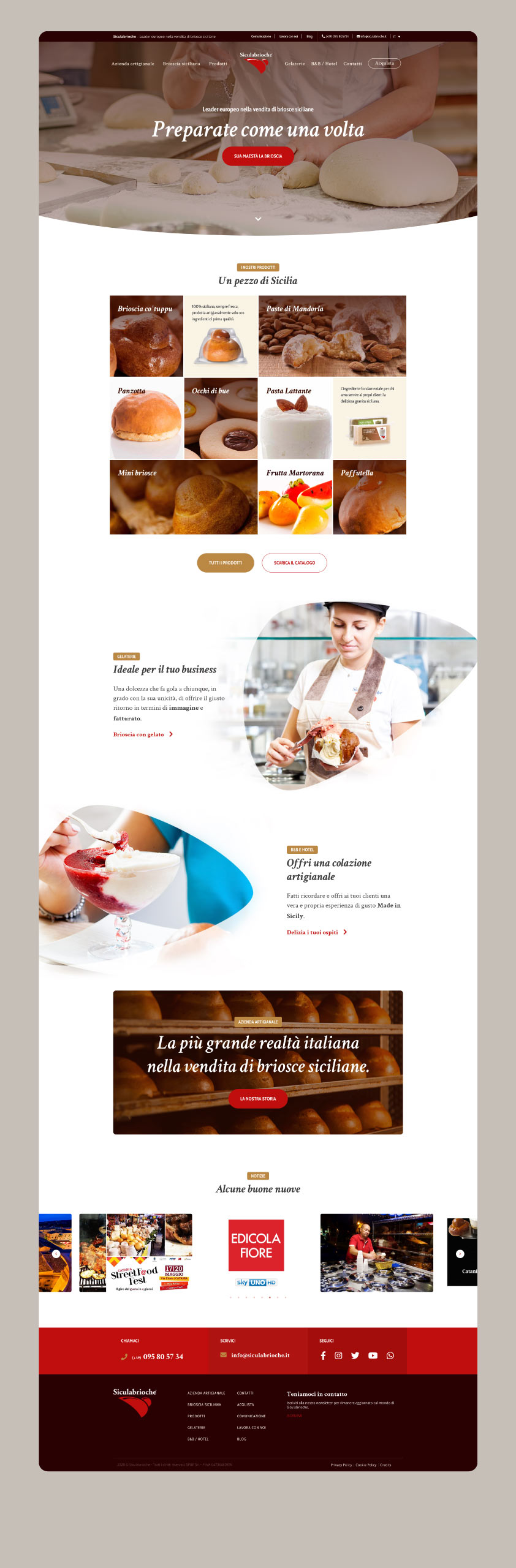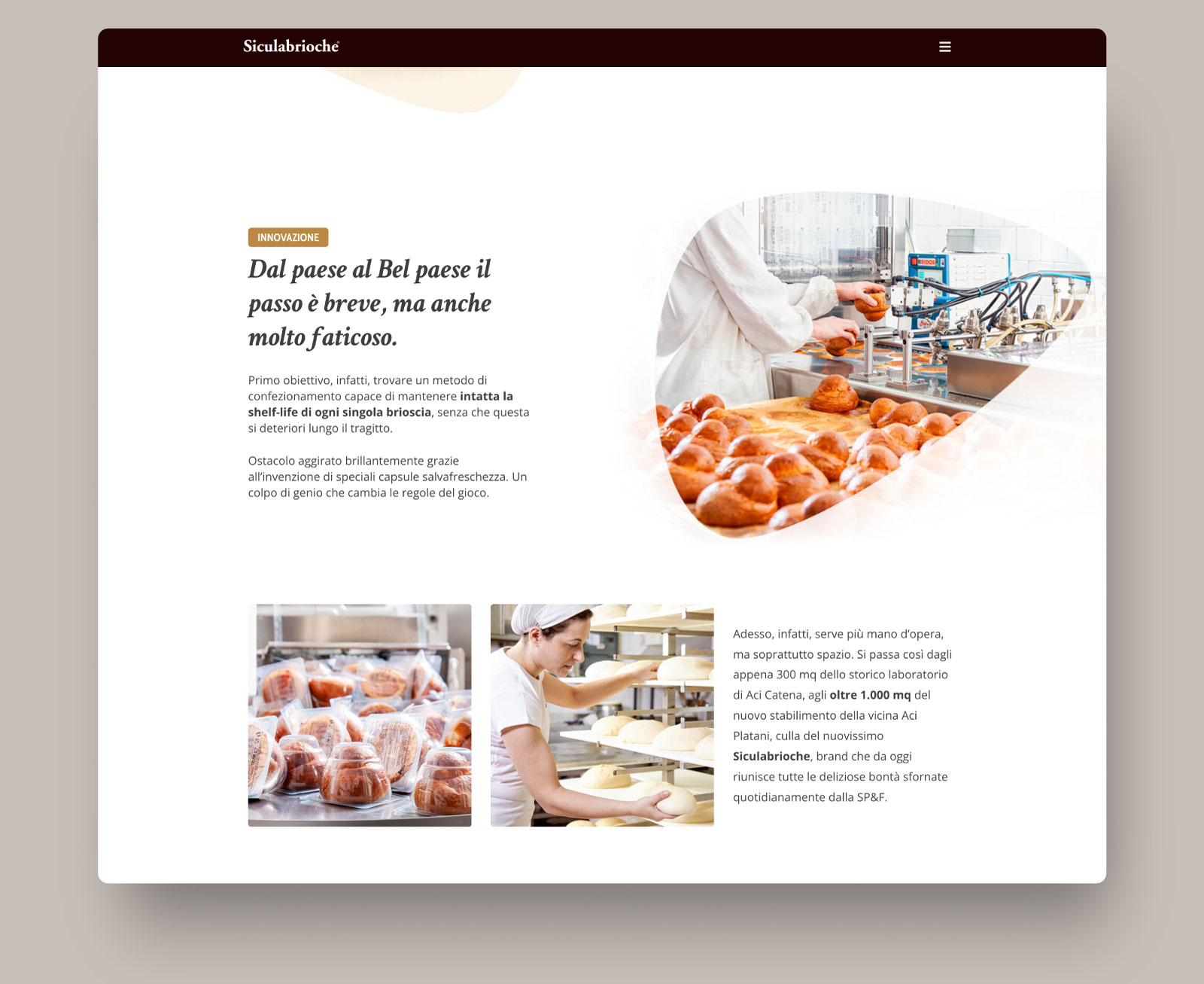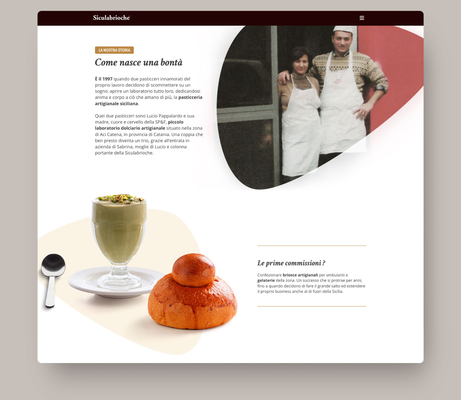 Sito web per SP&F, proprietaria del brand Siculabrioche, leader europeo nella vendita ed esportazione di brioscie siciliane.