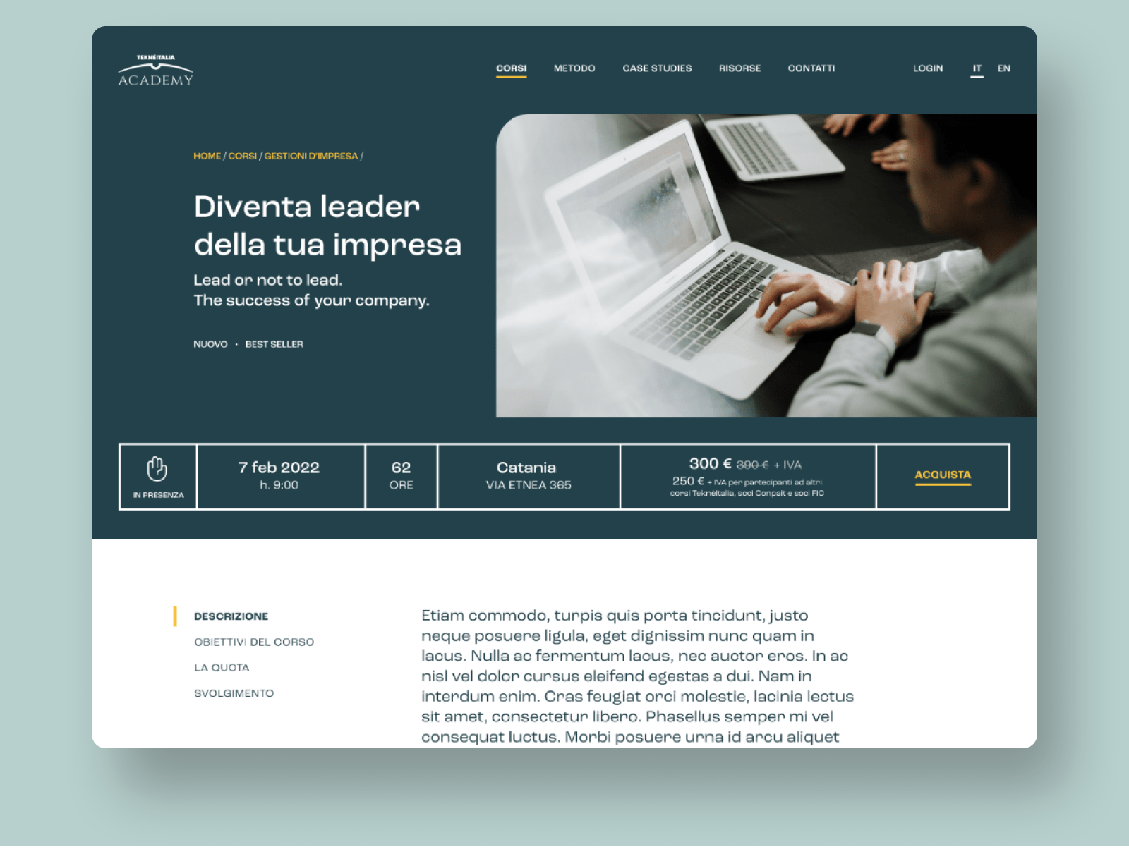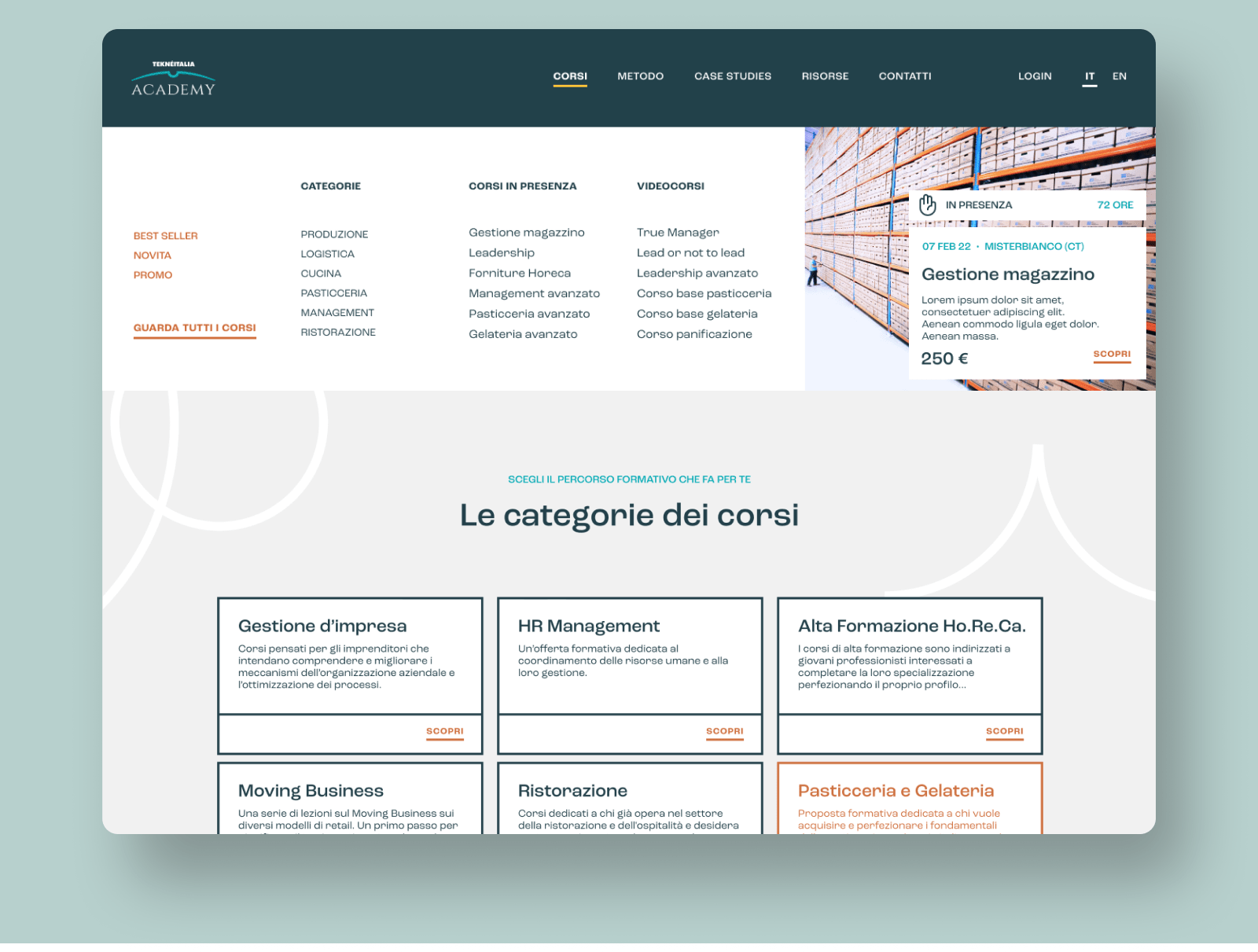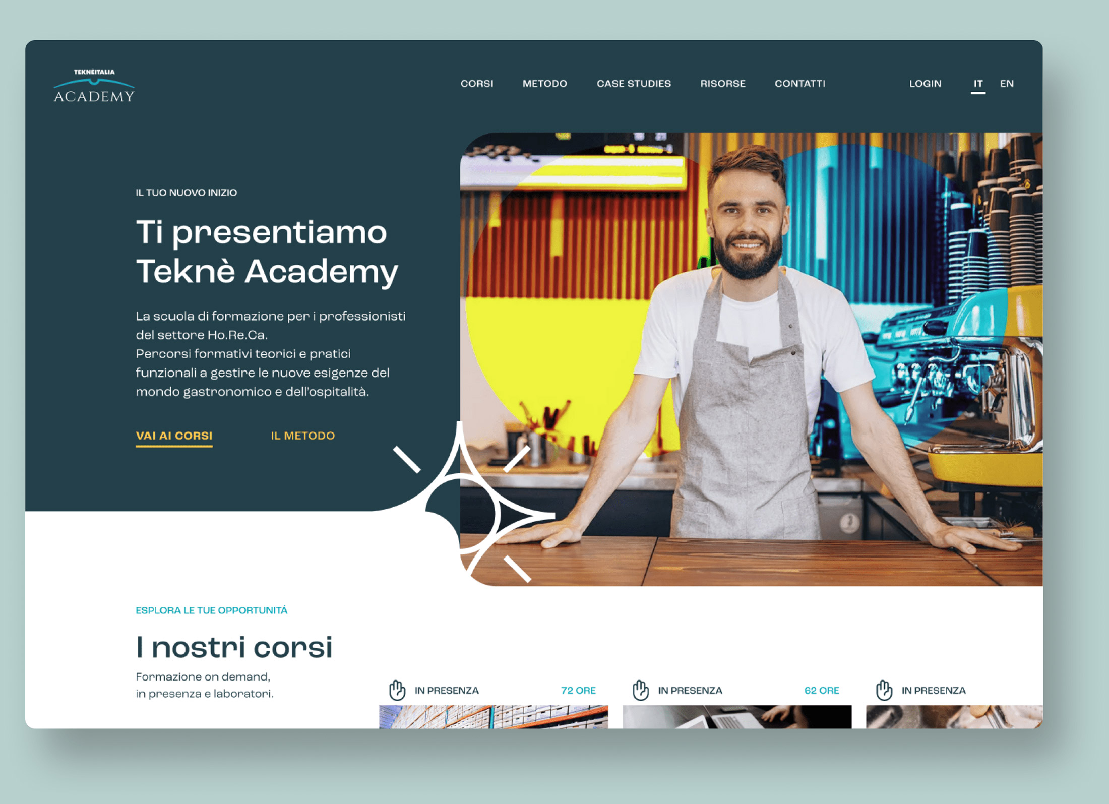 Sito web realizzato per Tekné Academy, unità formativa di TeknéItalia, azienda leader nella progettazione e produzione di veicoli per il moving business.